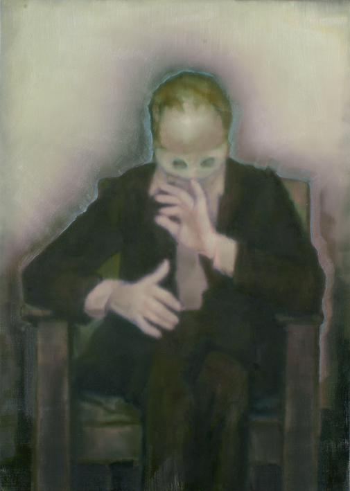Attila Szucs's works are concerned with power struggles. This is manifested in the relationships he depicts between the individual and society, in the exploration of tensions between the conscious and subconscious mind, and in his focus on the manipulation of relationships; who is the victim and who the victor? Sometimes Szucs uses an object as a metaphor for the outcome of these relationships, but more often his work is concerned with the tension between what the individual can see and what they imagine. In the case of a masked figure the subject is a patient, so caught up in their own world that it has become more real than the world around them. Experiments in science and in psychology fascinate Szucs and have been the subject of many of his works. Often his subjects are surrounded by a strange aura, perhaps suggestive of kinetic energy or of tensions and elements that might normally remain unseen but can nevertheless be felt, such as the force of human emotions or of chemical and biological reactions. Fields of energy and of emotion find physical expression in Szucs's work; a task that is not easy to convincingly portray. Yet because of the consistency of his style and palette and also because of his dedication to his subject matter, Szucs's 'worlds' are highly plausible, even engaging: in no small part due to the artist's empathy for human nature and comprehension of the power of what it is possible to feel or believe, even if it is not visible.