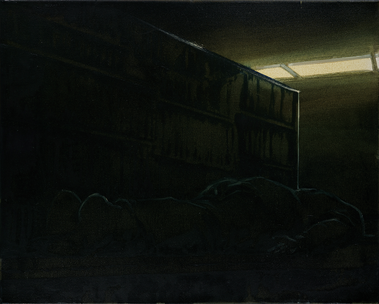 Anything appearing on Attila Szűcs’s pictures gives the impression of a universe locked from the outside and inwardly boundless. This makes them like something enclosed in an aquarium. In this regard the painting entitled Playground at Night is typical. There are no lampposts, though a sharp light is cast on the playground; nor is the moon that might light it visible in the sky. The light emanates from the playground itself, which stands out of the surrounding darkness like a spaceship, or rather like a flying carpet. The light here is inseparable from the substance itself. Moreover, the substance itself is light. However, this mysterious light beyond light is not physical but metaphysical in nature. Yet while in traditional mythology light was always associated with creation, here it is associated with the withdrawal of creation. The result is a negative universe like an aquarium.