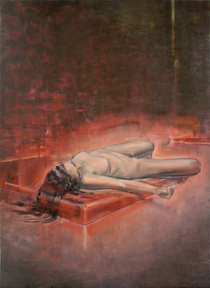 This is why the objects and human figures disappearing from the pictures are in an unusual state of being. The world of Attila Szűcs’s pictures, as already referred to by István Kemény in 1997, recalls the last sequence of the film 2001: A Space Odyssey. Everything seems of this world, but meanwhile everything is permeated by the lack of this world. The objects seen in the pictures entitled Bed in a White Room or Sheets want to literally break out of themselves: it as if the beds affected by the outside light, and the sheets affected by the inside light, want to step out of the confines of their own physical boundaries. But can we still call it a bed when it has left its own essence as a bed? And the same question can be posed regarding the sheets. According to the essential tradition of European thinking, the answer is yes. Plato would say that these beds and sheets approach the idea of the Bed and the Sheet. Plato could say this with regard to the objects in the other paintings: he would recognise in the enigmatic radiance the ideas beyond space and time everywhere. To a certain extent, he would be right: these beds and sheets, however precise and lifelike they are portrayed, are not completely identical to themselves. It is difficult to imagine that anyone would lie on them (and if someone did, as in the picture entitled Naked Woman on Red Mattress, then the person herself can be considered only partly a flesh-and-blood human being), nor is it likely that the sheets could be spread on anything. That is, they are not completely the same as their material selves. However, on this point we must take our leave of Plato, for while nothing is completely the same as itself, nothing points the way to anything beyond itself. The objects in Attila Szűcs’s world of pictures are not the charting of concepts and ideas. Here the bed is not the realisation of the concept of the Bed, nor is it an allegory. It does not refer to any background (superior) being that exists; it does not symbolise anything. It does not step beyond itself – to use a foreign expression: it does not transcend itself. But meanwhile, it is not closed into its mere material nature; however much it resembles a bed, it cannot convince us that it is a real bed. I search in vain for the idea of a bed in it, but I can only call it real with reservations. Its immanence is at least as questionable as its transcendence.