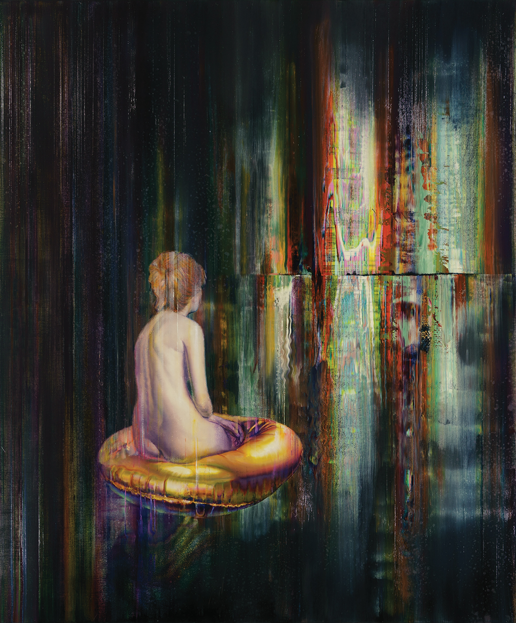 disappearing phenomenon, oil on canvas. 200x150cm. 2023, golden swimming belt, oil on canvas. 240x200cm. 2022-23, plush toys and skulls, oil on canvas. 35x45cm. 2023