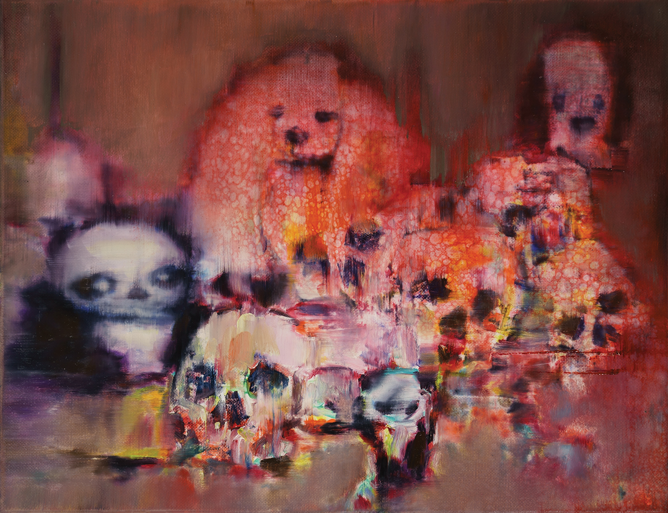 The artist's third work, Plush Toys and Skulls, captures this